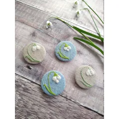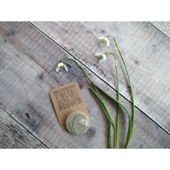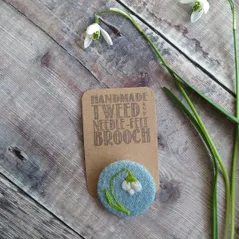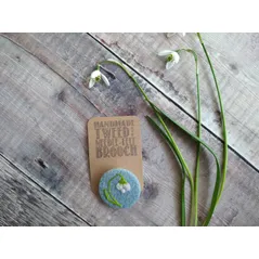 Harris Tweed and Needle Felt Snowdrop Botanical Brooch with Hand Embroidery