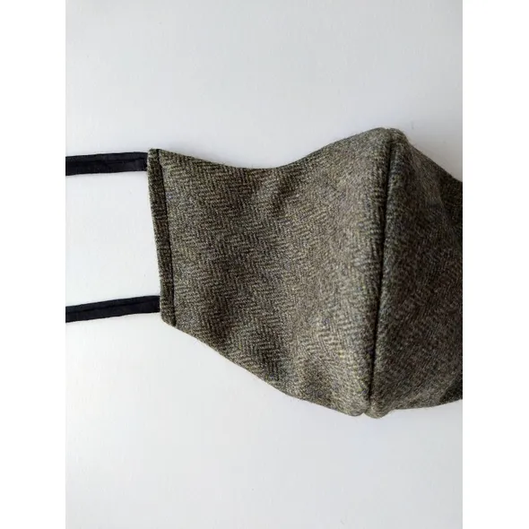 Stay safe in style. Shaped face mask made from British Tweed. Each mask features: - A shaped design that fits comfortably on the face. - An aluminium nose wire which helps to reduce fogging when wearing with glasses. - A non-woven inner layer, and a breathable cotton lining. - Adjustable elastic ear loops OR tie straps made from recycled t-shirt yarn. - Removable/replaceable nose wire WASHING - Machine washable at 40°c on a gentle cycle. - Remove wire before washing or wash in a laundry bag. - Do not tumble dry. SIZE My standard women's size is to fit a face measurement of 5" from the bridge of the nose to just under the chin. I can make the masks to any size for the best fit - please include your face measurement in the comments box at checkout or message me. Thank you